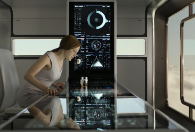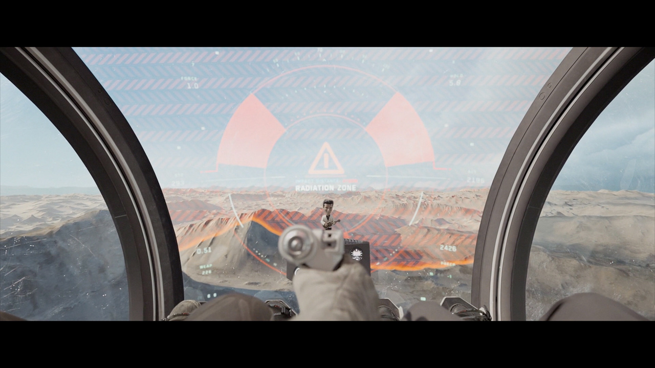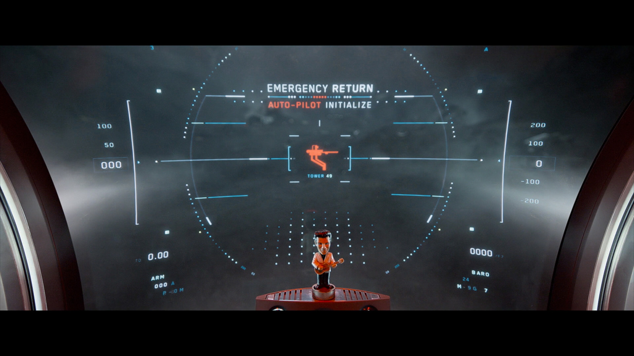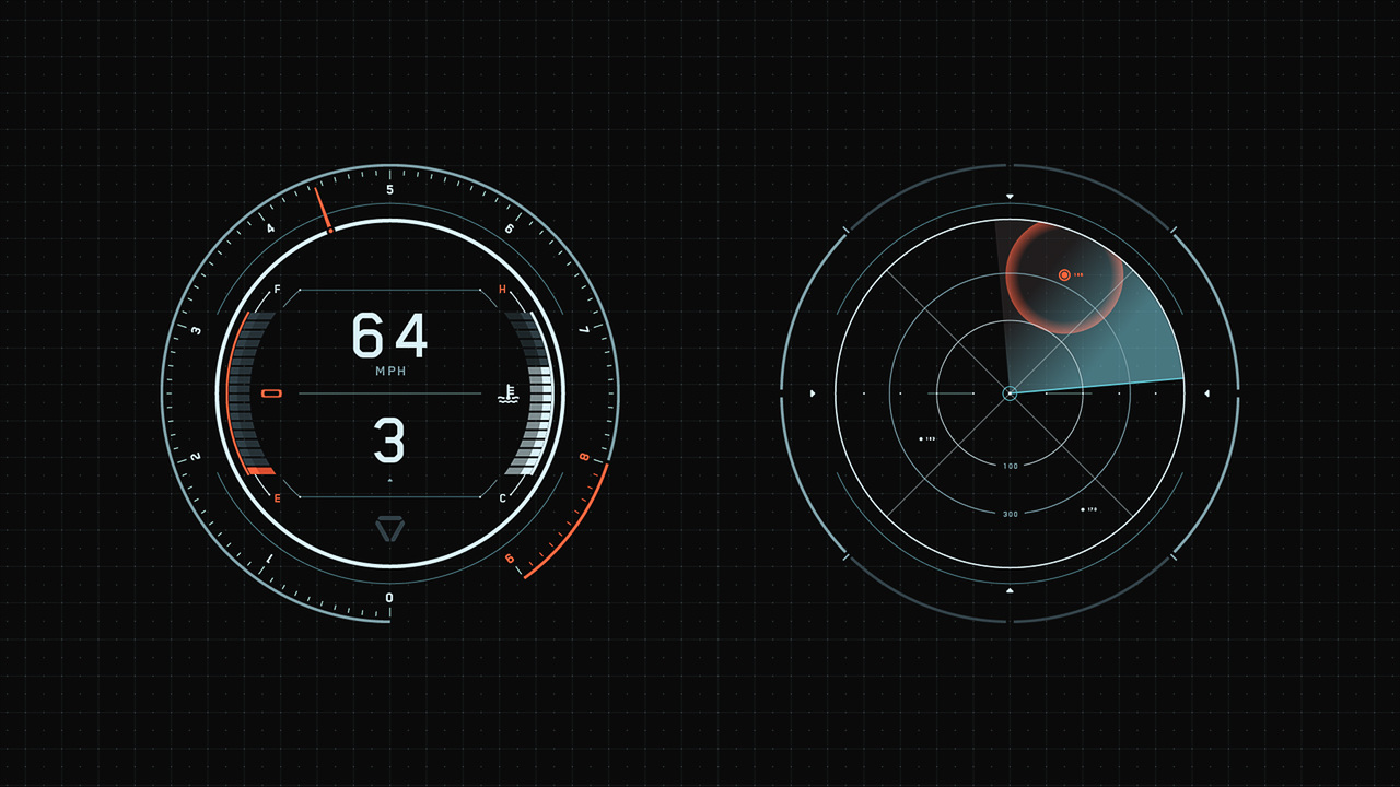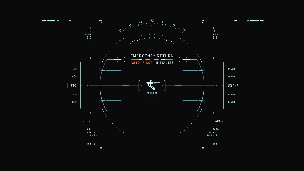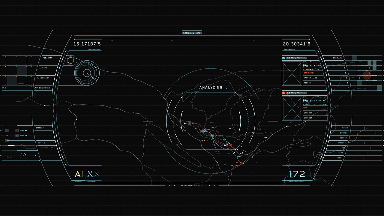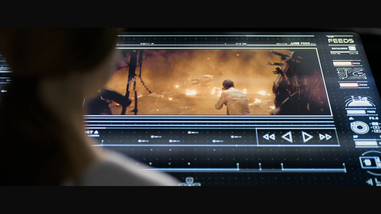 Jack's helicopter, a remarkable Daniel Simon creation called the Bubbleship, was Jack's paramount vehicle in the film… The UI appeared as a hologram embedded within the spherical glass cockpit, done to perfection by the lovely folks at Pixomondo, and functioned to assist Jack in his flight and combat duties throughout the film… The team researched a grip of Flight simulator and Helicopter Combat interfaces and sought to modernize the aesthetic while still delivering key functionality that would mimic real-world flight tools... And of course the team didn't want to fuck up Simon's baby with ugly UI, the German wrath was implanted deep within and ultimately, the Bubbleship UI was by far the most researched and pampered graphic task...