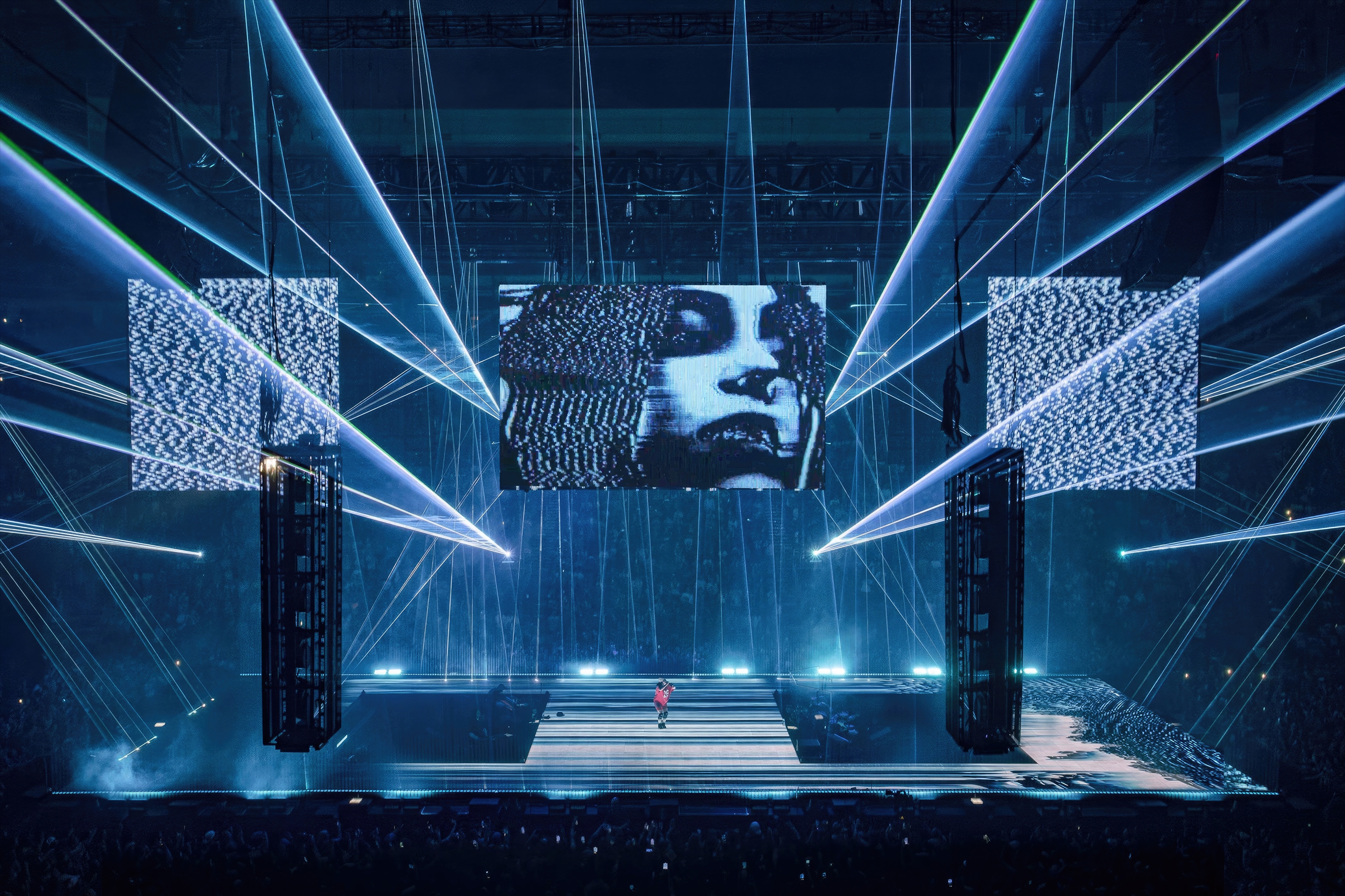 For the content program, the team created a deeply textured lightscape, driven by practical cinematography and analog glitch techniques, to bring the stage to life. Pulses of light and shifting textures were perfectly synchronized to the music, making the visuals an integral part of the performance. The carefully choreographed interplay of these elements amplified the energy of the song, creating an immersive, multi-sensory experience for the audience.