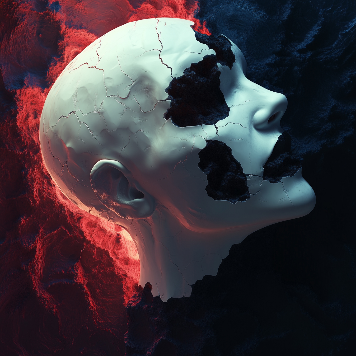 For the concept ‘Shattered Not Broken’ the team explored themes of fragility, resilience, and emotional fragmentation through a series of porcelain sculptures modeled after Billie Eilish’s face. These digital statues were rendered with high fidelity in MidJourney, with a focus on sculptural detail, surface texture, and emotional weight. Each face was cracked, splintered, or shattered in unique ways—symbolizing the beauty in brokenness and the complexity of emotional endurance.