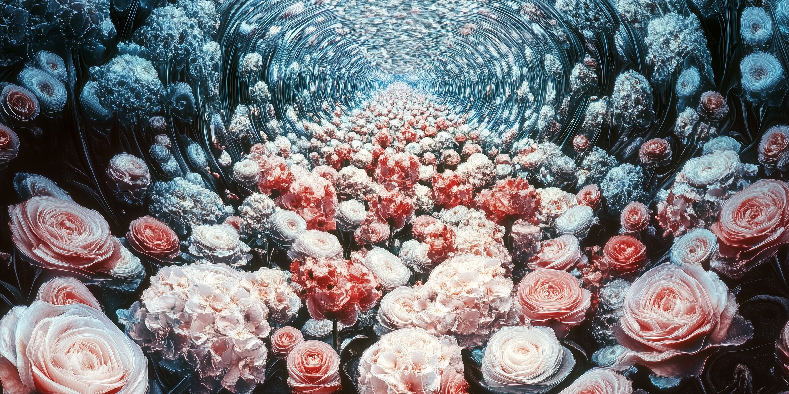 For the concept ‘Infinite Bloom’ the team conceived a meditative journey through an endless tunnel of flowers and refractive glass—a modern reinterpretation of the infinity room, reimagined with organic growth as the central theme. The visual experience unfolded as a continuous forward motion through this blooming corridor, where petals unfurled in slow, surreal rhythm and light refracted endlessly across mirrored surfaces. The sense of depth and repetition evoked the infinite nature of growth, both in the natural world and within the human psyche.