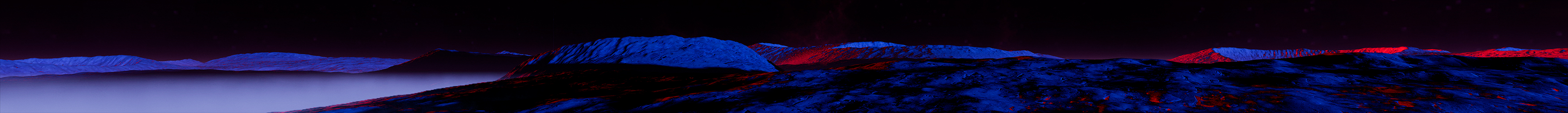 Approaching in a night pass from beyond the terminator line, xO-9’s descent pulls back the dark curtain of night. This daybreak fly-over illuminates a desert rippled with dunes. And dotted with unidentifiable orbs of light that give the sense of nascent life.