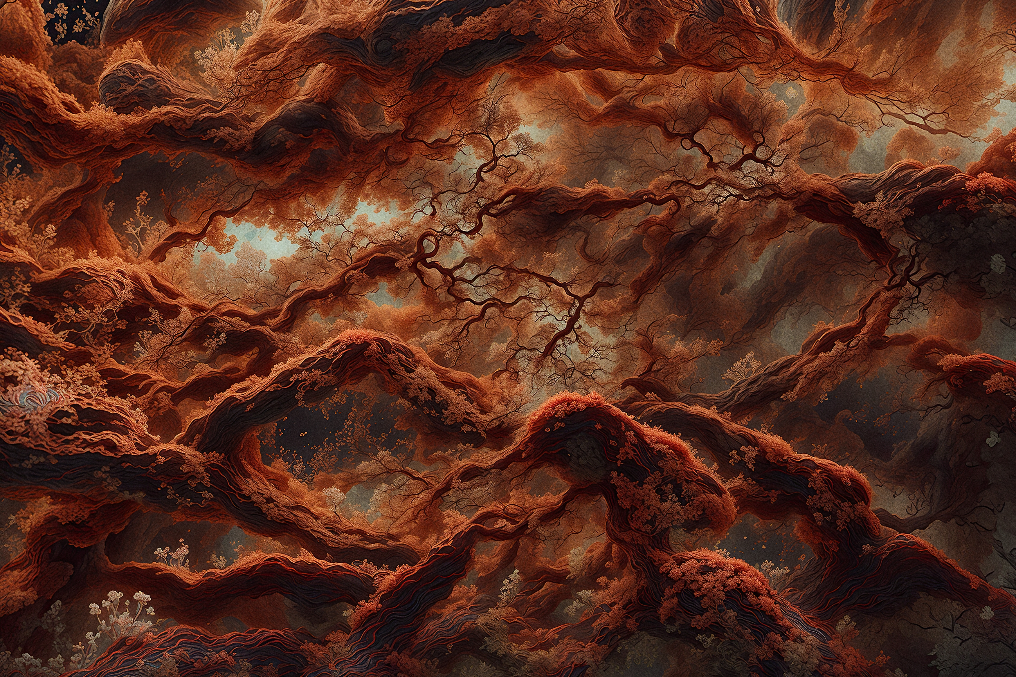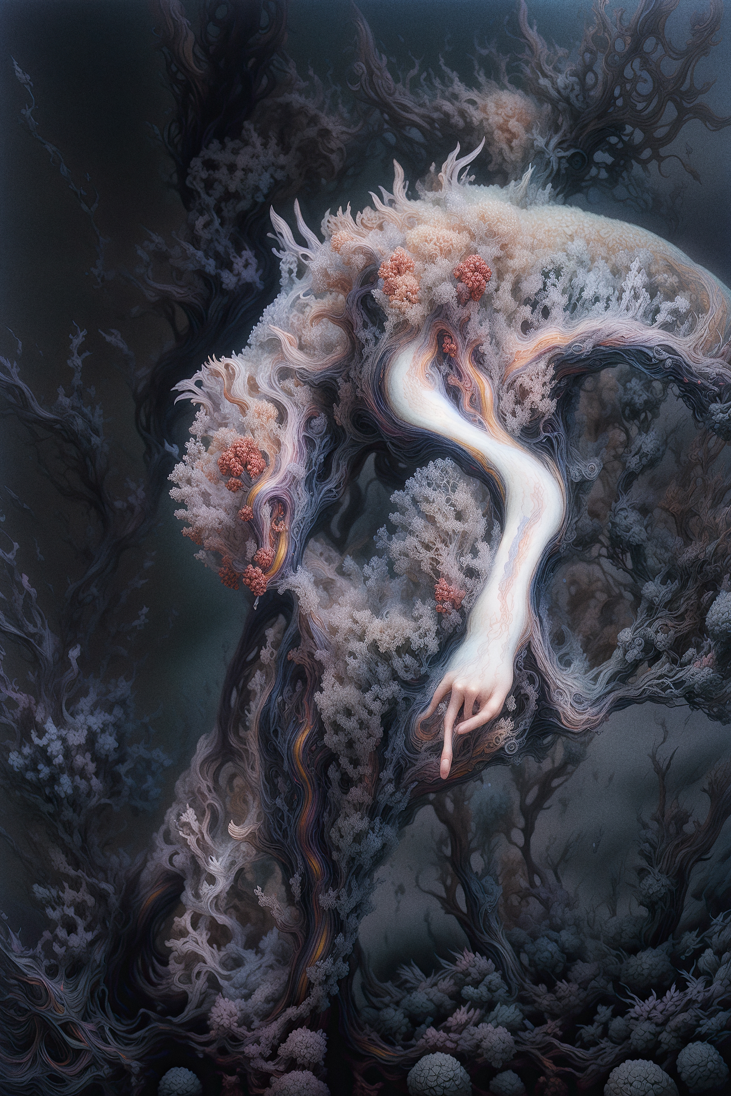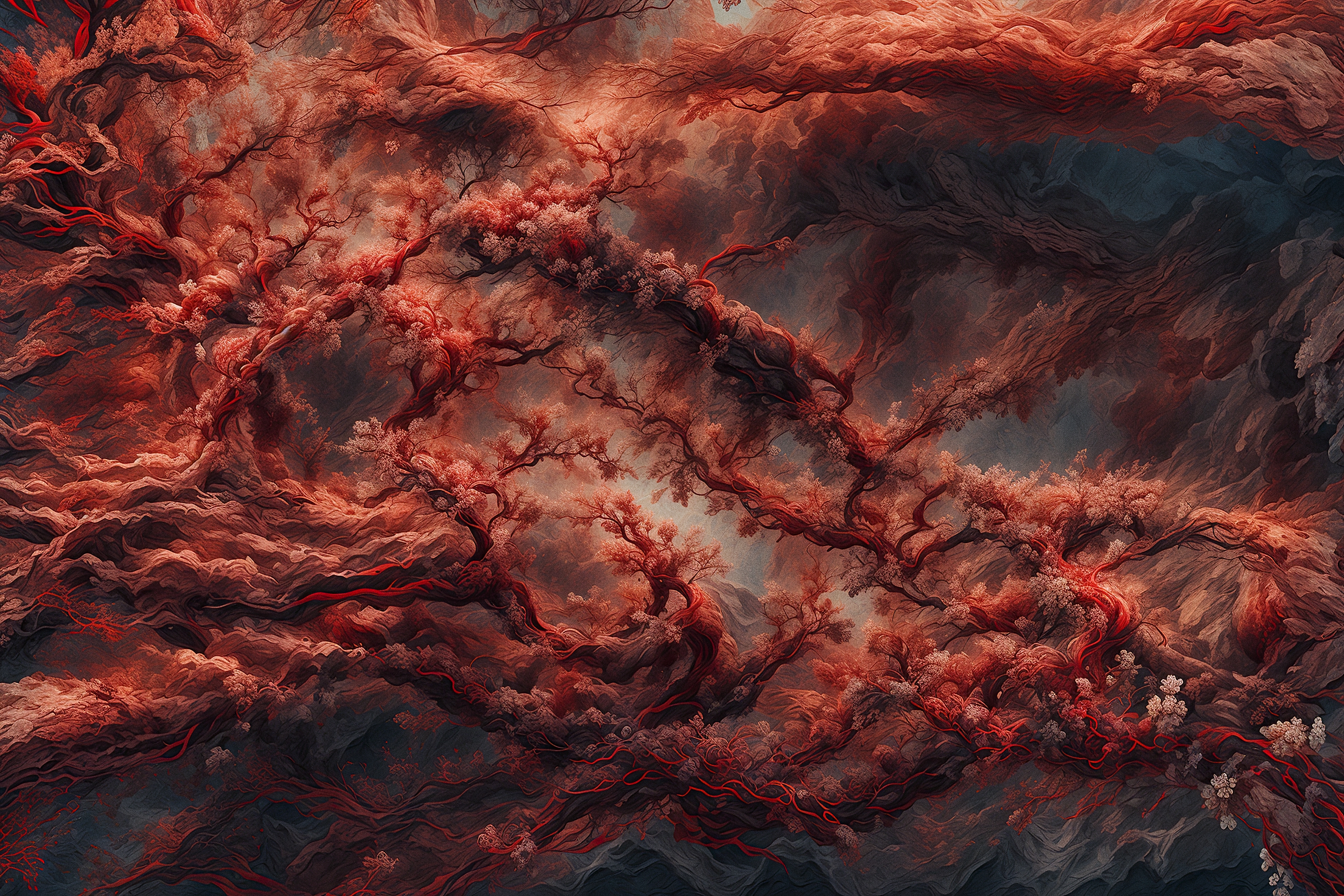 Using complex algorithms, these captures were transformed into surrealist mutations, extensions of nature’s raw pulse unfolding into new and improbable forms. Pixels became cellular units, subdividing and multiplying through a process akin to digital mitosis, guided by the breathing technique. The resulting compositions echo the vitality of living ecosystems while mirroring the gradual awakening of perception itself. This work operates as both transfiguration and meditation, a digital microcellular bloom shaped by machine intelligence and the intuitive spirit of the natural world. In this way, the project moves beyond documentation toward communion, articulating an evolving dialogue between the organic and the synthetic, and revealing the luminous structures that underlie life itself.