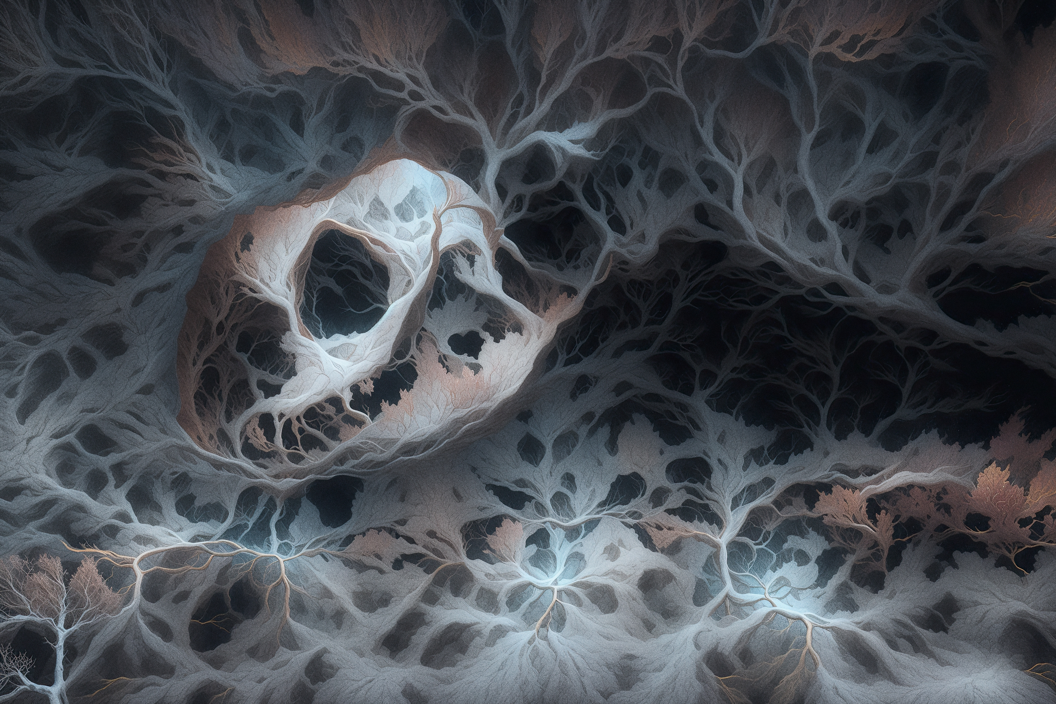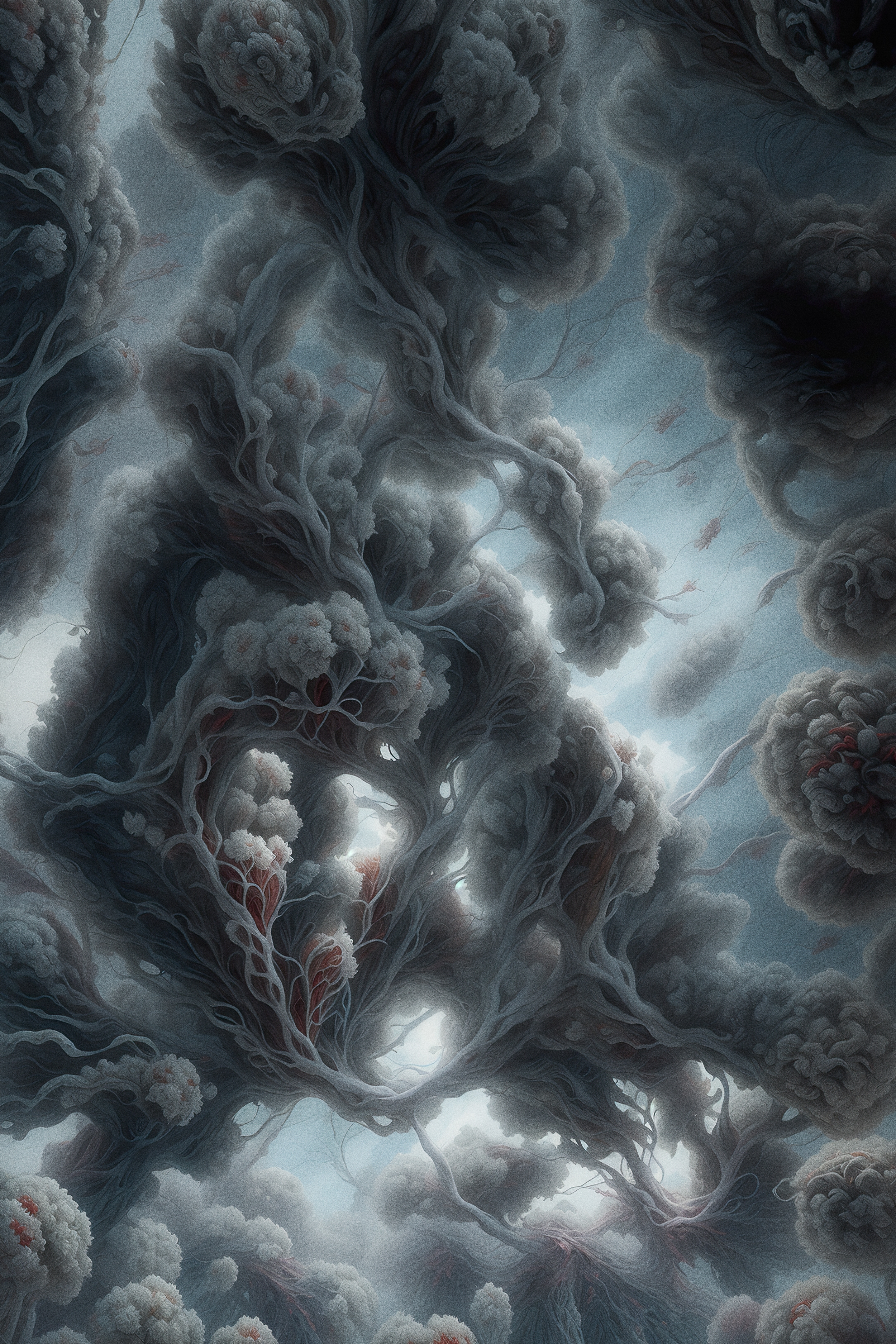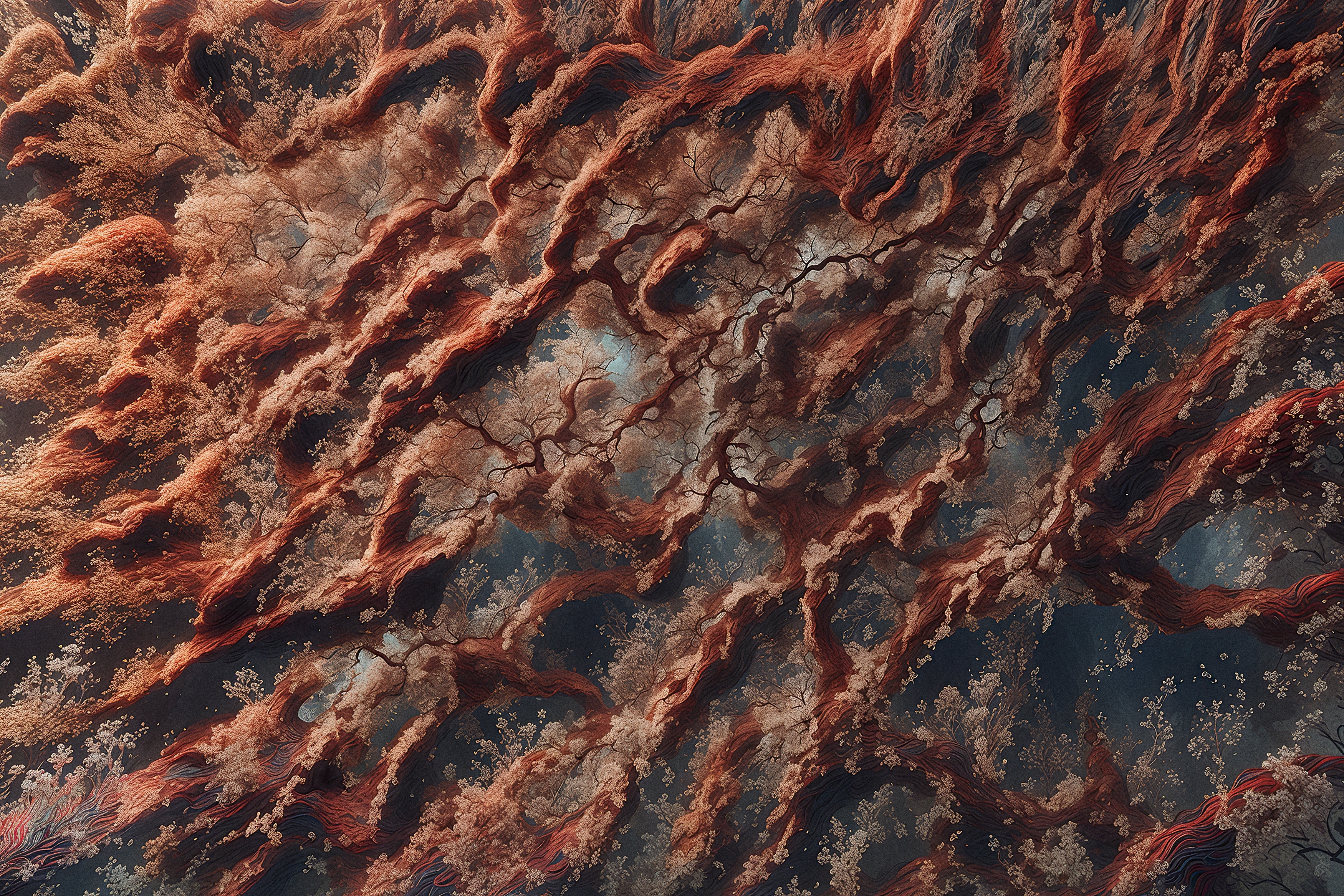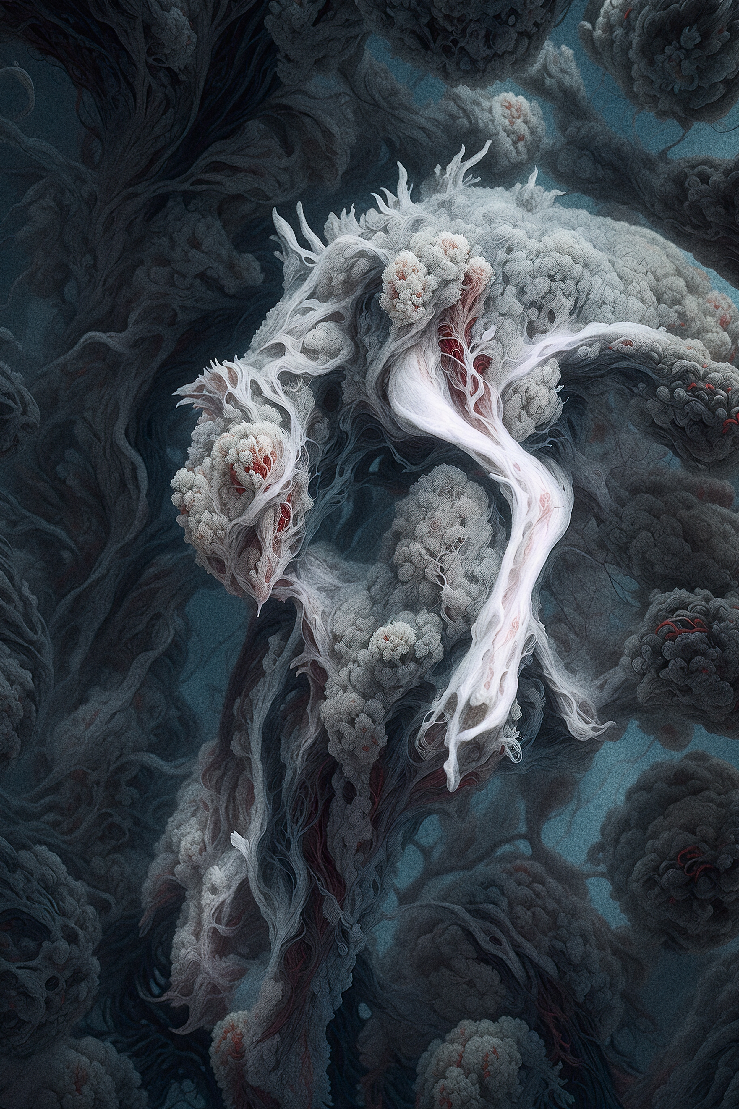 Using complex algorithms, these captures were transformed into surrealist mutations, extensions of nature’s raw pulse unfolding into new and improbable forms. Pixels became cellular units, subdividing and multiplying through a process akin to digital mitosis, guided by the breathing technique. The resulting compositions echo the vitality of living ecosystems while mirroring the gradual awakening of perception itself. This work operates as both transfiguration and meditation, a digital microcellular bloom shaped by machine intelligence and the intuitive spirit of the natural world. In this way, the project moves beyond documentation toward communion, articulating an evolving dialogue between the organic and the synthetic, and revealing the luminous structures that underlie life itself.