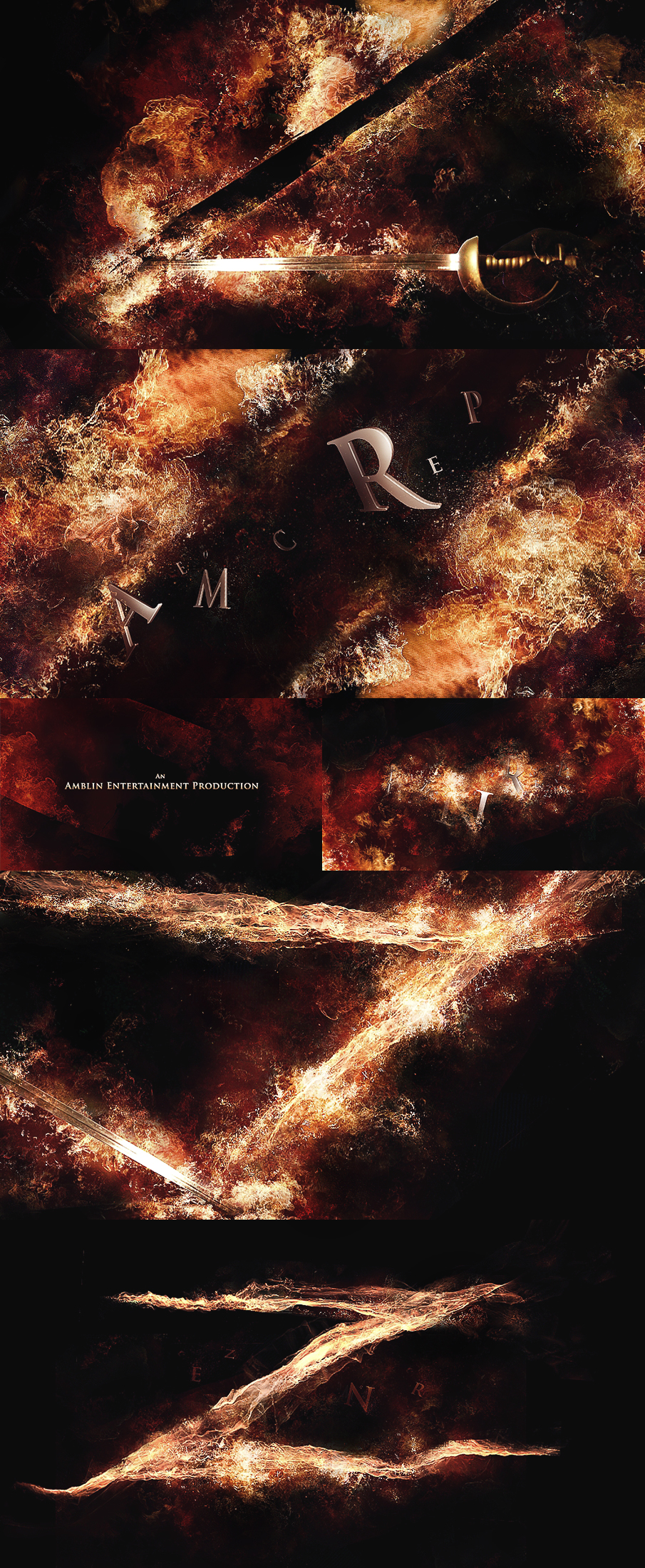 –– 01The concept for this alternate set was to have a wall of fire being sliced apart by Zorro's light saber, pushing the camera through the fiery caverns to uncover flying typography spelling out the credits.