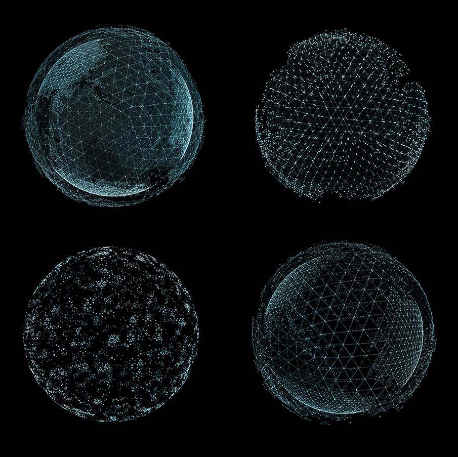 –– 06During Clu's momentous speech towards the end of the film, he builds an army of programmatic drones to ultimately escape the computer and take over the world. So naturally during his speech there had to be a giant globe hologram depicting this takeover, where the contours of each continent become infected with 'HexVirus' line-work, and then spreads inward through the land masses.