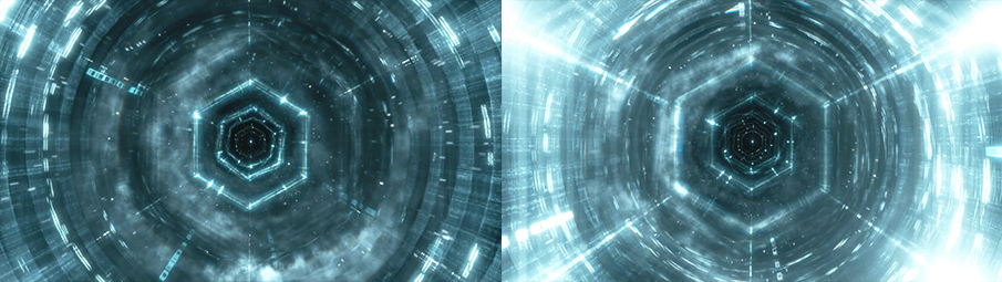 Another series of concept art the team executed was for the interior of the 'Portal' itself, which conceptually was to be a light-beacon of intensely radiating data streams. Utilizing more recycled apps from Nimzee, munko and Sargeant generated a library of different data stream tunnels to inspire and inform DD's houdini team. The choice pick of the batch was a hexagonal stream of egyptian line-work emanating towards camera in a beautifully asymmetrical and impossibly organic motion, output directly from the application.