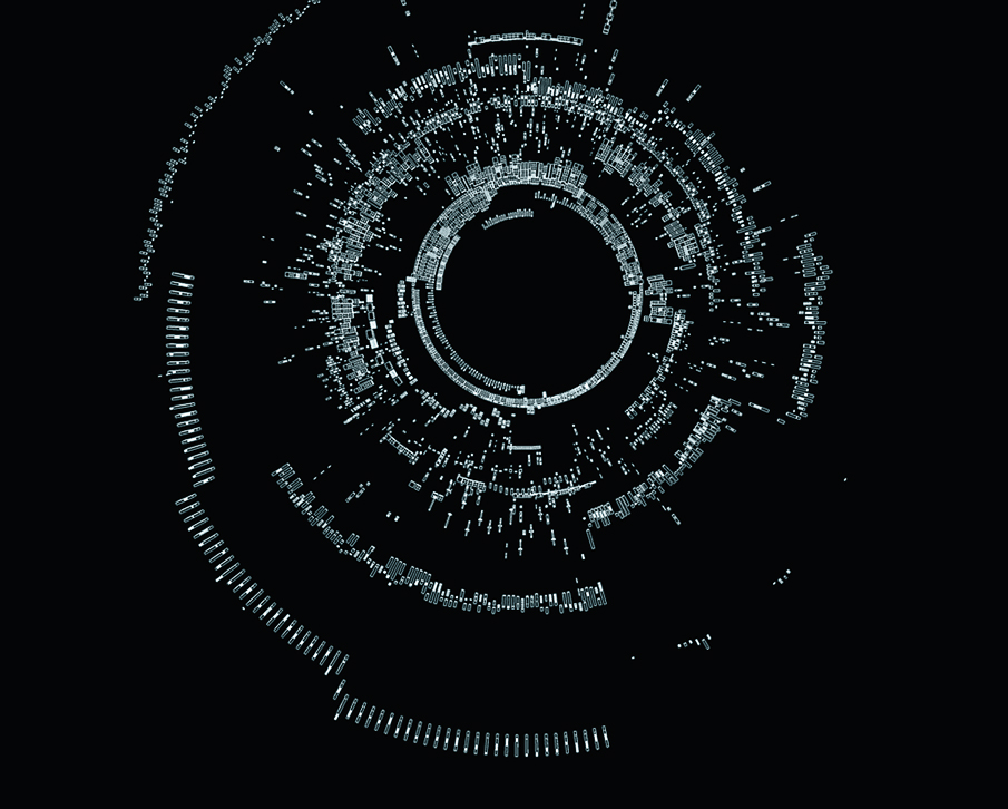 –– 03The team researched disc defragmentation diagrams and sought to greatly modernize the aesthetic, for the data required to create of the TRON universe was immense to say the least, requiring the defrag diagram to look like an other-worldly representation of data re-structuring.
